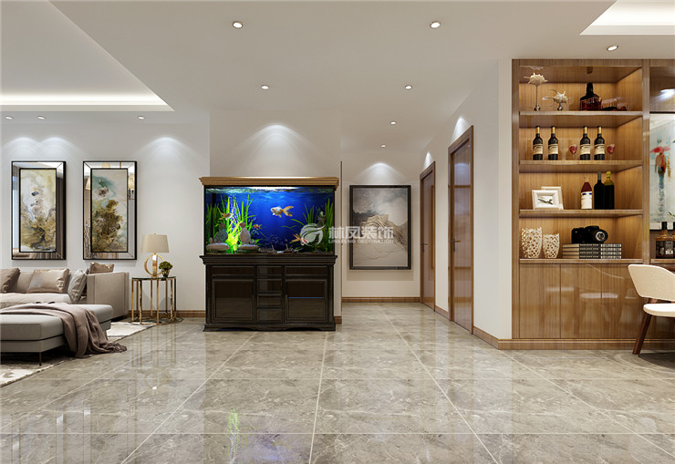 三室两厅一厨两卫,高层整体采用美式风格,色调以深色为主,体现美式的居家感和温馨感。