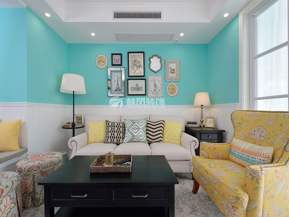 三室两厅一厨两卫,高层整体采用美式风格,色调以深色为主,体现美式的居家感和温馨感。