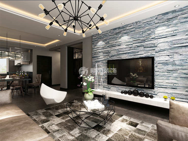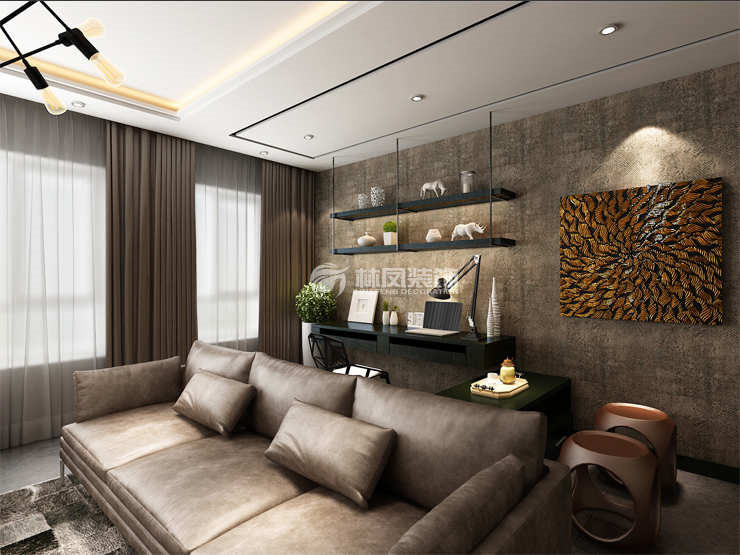 三室两厅一厨两卫,高层整体采用美式风格,色调以深色为主,体现美式的居家感和温馨感。