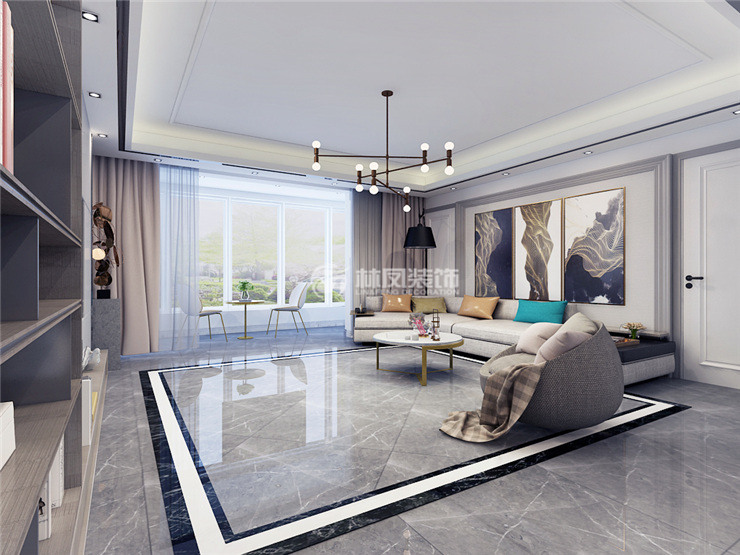 三室两厅一厨两卫,高层整体采用美式风格,色调以深色为主,体现美式的居家感和温馨感。