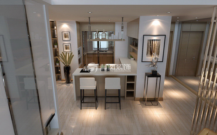 中式厨房:5MM平方米使用面积(长1800MMX宽2700MM) 配有单独洗菜盆及烟机炉具 建议双门冰箱, 西式厨房:7.2MM平方米使用面积(长2500MMX宽2700MM) 开放式厨房 能满足4-5人就餐使用配有早餐台, 早餐台 :配有洗菜盆单盆用于洗果蔬 下方配有直引净水器用于直接饮用自来水水, 餐台台面配有镶嵌式电磁炉便于烧水 沏茶 咖啡等使用. 餐厅区域:摆放6人位餐桌 北侧设计为对称酒柜, 酒柜中间配有成品餐边柜及装饰花瓶装饰画等配饰, 西侧卫生间门前区域配有装饰性隔断起遮掩, 卫生间开门的作用.