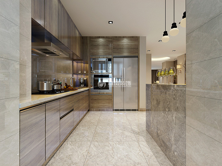 开放式的厨房,与餐厅的相呼应,并配有独立的吧台。