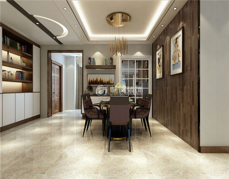三室两厅一厨两卫,高层整体采用美式风格,色调以深色为主,体现美式的居家感和温馨感。