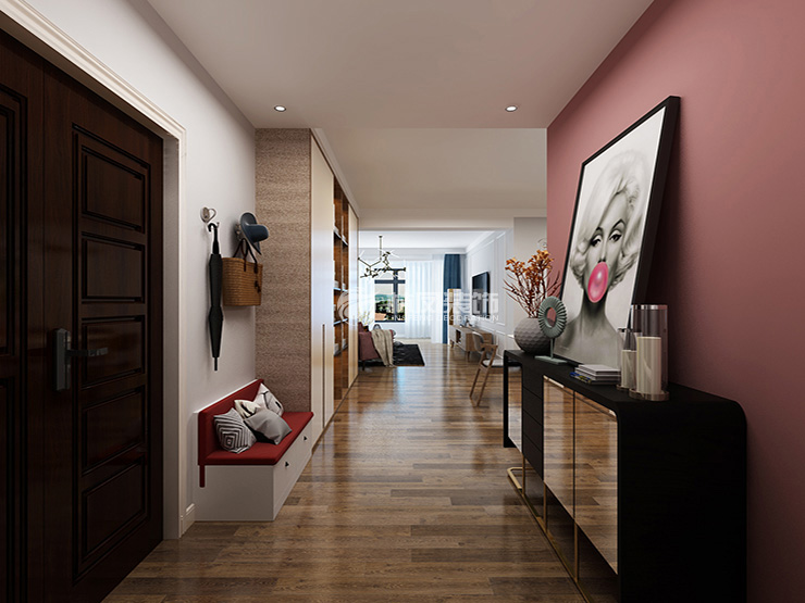 三室两厅一厨两卫,高层整体采用美式风格,色调以深色为主,体现美式的居家感和温馨感。
