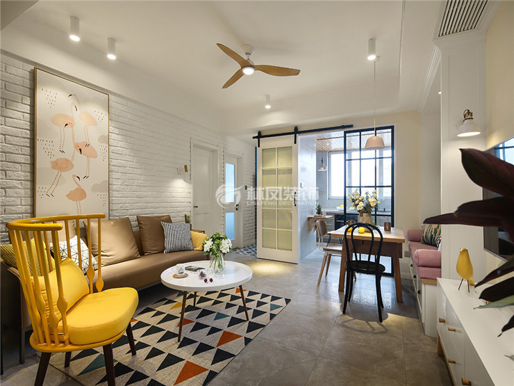 设计理念:本案例定位为北欧,业主是年轻的小两口,特别喜欢北欧家具已经色彩。本案围绕“轻装修重装饰的理念” 硬装并没有铺设太多,后期都是用软装来搭配。