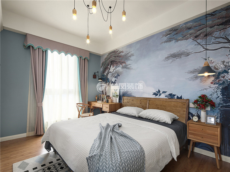主卧室还是延续的客厅北欧的风格,家具也采用了北欧木色家居。