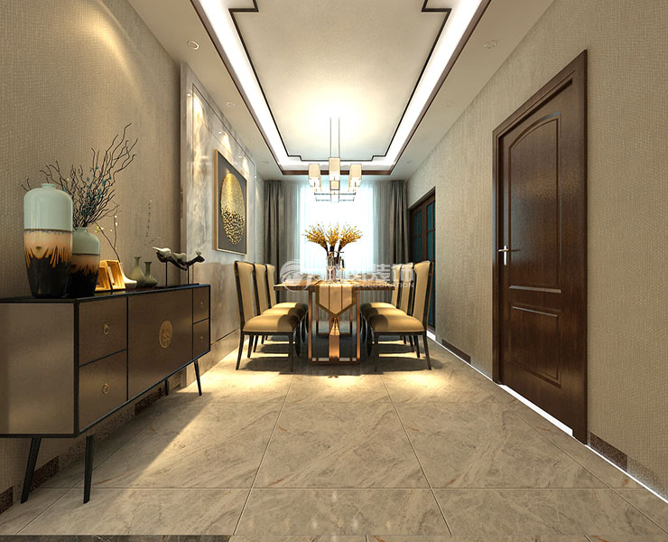 三室两厅一厨两卫,高层整体采用美式风格,色调以深色为主,体现美式的居家感和温馨感。