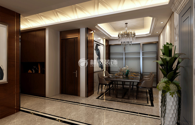 餐厅的整体格局做了很大的调整,原有的餐厅区只能放在过道上,对于一个128㎡的房子来说这是个非常不合理的建筑设计,所以针对这个户型把座了相应的调整。