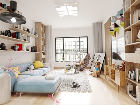 本设计方案以北欧风格为主,以明快的淡蓝色作为全屋主色调,提升了整个空间的温馨感觉,打造了一个浪漫的空间。