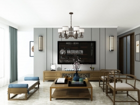 本案是新中式风格与现代元素的融合体;大量使用了原木色与灰色形成对空间的分割,使整体空间立体感加强,配上简单的传统中式线条视觉上更加丰满大气。