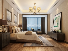 本案是以中式风格为主的设计,颜色厚重而又沉稳,造型朴素而又优美,庄重而又典雅,独特的中国特有色彩的选择体现了中式的文化深沉与厚重,整体的布局形式追求对称庄重,细节的处理上更加倾向于鸟语花香的人文情怀。