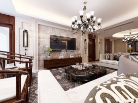 本案为新中式风格。与其它西方、东南亚等装修风格有很大不同,首先所营造的文化氛围是有其特定的文化背景作为支撑,以此来传递特定文化氛围中人们的生活追求,营造中国浪漫情调的生活空间。