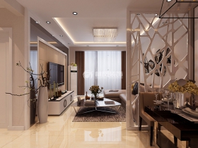 该案设计采用现代设计风格,利用软装与硬装整体搭配的方式,塑造出一个温馨明亮的空间。