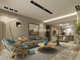 本案是新中式风格与现代元素的融合体;大量使用了原木色与灰色形成对空间的分割,使整体空间立体感加强,配上简单的传统中式线条视觉上更加丰满大气。