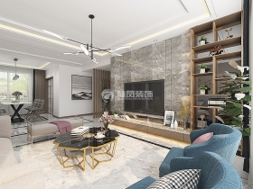 房子属于洋房类型,风格采用的现代轻奢风格,运用了石材和金属线的搭配,业主本人比较喜欢玫瑰金,客厅和餐厅的吊棚多已金属线跌级呈现,这样能让空间更有设计感和层次感