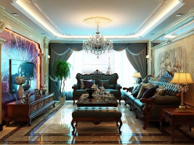 本案装修风格定位为欧式新古典风格,墙面及地面以理石为主,搭配实木框架的家具。软装饰搭配丝绒,金色丝线等,饰品摆件以鎏金鎏银及瓷器。