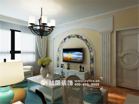本案运用了简约美式的装修风格,其特点家具厚重,用色统一协调,装饰无多余冗杂之感。本案运用米黄色系作为墙面基础,加入清新色系作为点缀,表现整体居家环境的简洁和温馨。