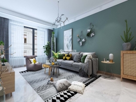 本案是现代简约风格,主要是以简洁造型为主。所以本方案设计时整体的色调上选择的是黑灰白色系搭配一些高级色软装配饰,整体家居配饰以深色为主凸显风格的高级感。